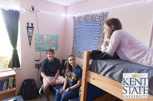 Kent State University มีห้องพักหลากหลายรูปแบบ เพื่อให้เหมาะกับความต้องการของนักศึกษา สำหรับนักศึกษาระดับปริญญาตรี มหาวิทยาลัยแนะนำให้พักในมหาวิทยาลัยอย่างต่ำ 1 ปีการศึกษา โดยหอพักในมหาวิทยาลัยจะมีการดูแลรักษาความปลอดภัยตลอด 24 ชั่วโมง สามารถดูรายละเอียดเพิ่มเติม คลิ๊ก https://www.kent.edu/housing/residence-halls