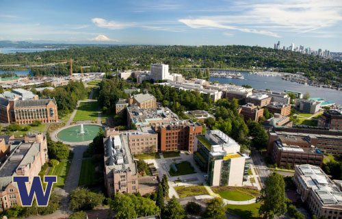 University of Washington ตั้งอยู่ในเมือง Seattle รัฐ Washington หรือเป็นที่รู้จักกันในชื่อ U-Dub เป็นมหาวิทยาลัยที่มีชื่อเสียงในการทำวิจัยขนาดใหญ่ ก่อตั้งในปี ค.ศ. 1861 ซึ่งเป็นหนึ่งในมหาวิทยาลัยที่เก่าแก่ที่สุดของ West Coast หรือภูมิภาคตะวันตก ปัจจุบันมีทั้งสิ้น 3 วิทยาเขต ที่ใหญ่และเก่าแก่ที่สุดในเครือ The University District of Seattle และอีกสองแห่งในเมือง Tacoma และ Bothell ในปัจจุบันมีอาคารเรียนมากกว่า 500 อาคารรวมกันจากหลายแคมปัส ห้องสมุดทั้งสิ้น 26 แห่ง และอาคารอำนวยความสะดวกของมหาวิทยาลัยที่มีให้นักเรียนอีกเป็นจำนวนมาก